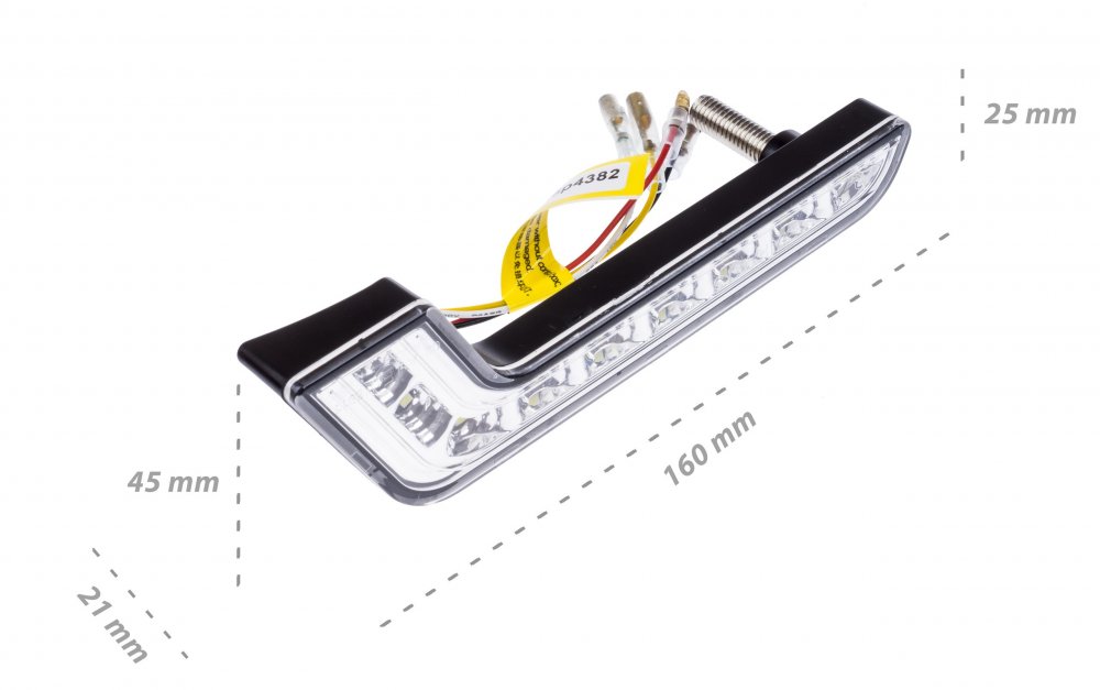 160 mm x 25 mm x 21-45 mm (délka x výška x hloubka)