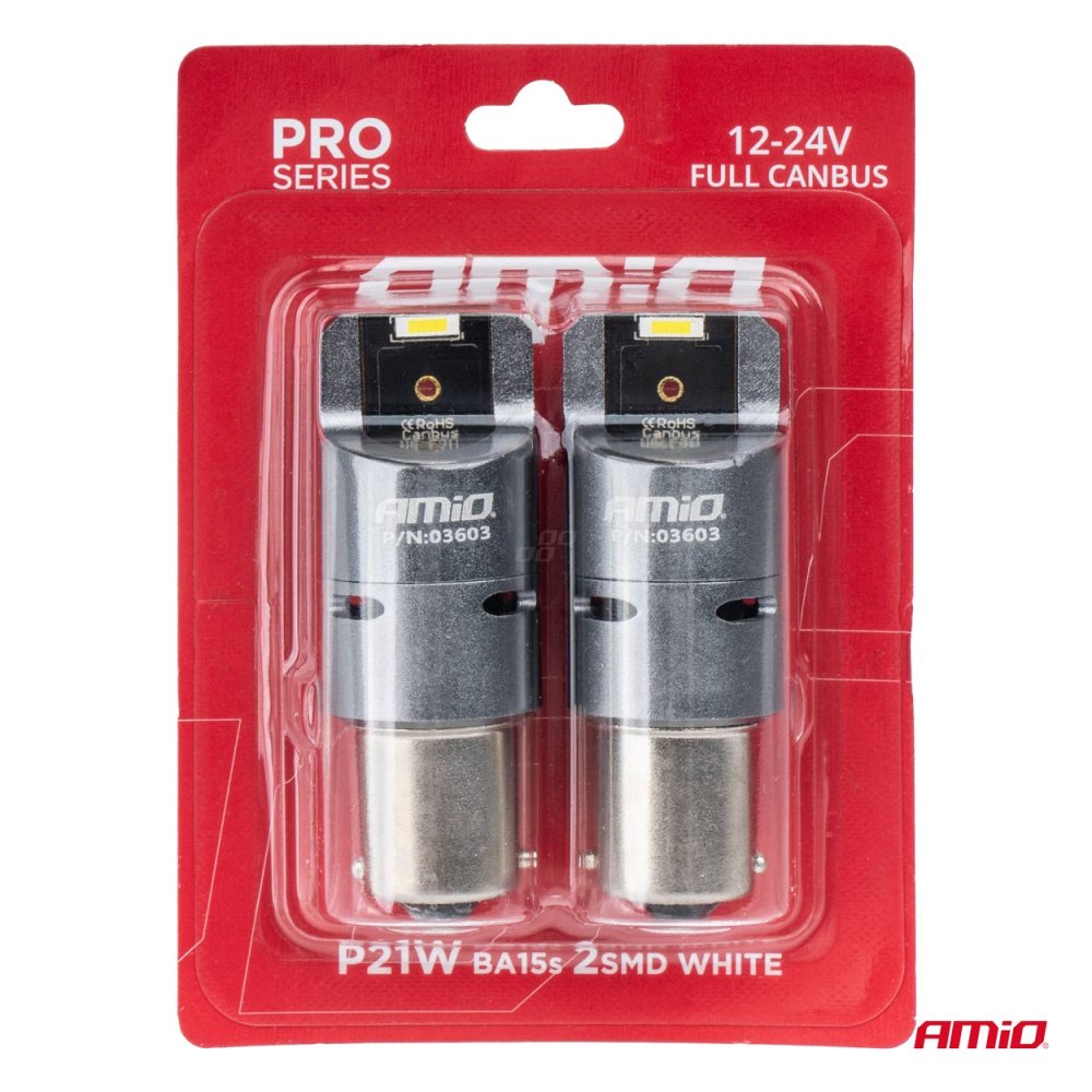 LED žárovky FULL CANBUS PRO BA15S P21W 2x1860SMD bílé 12V 24V AMIO 2ks