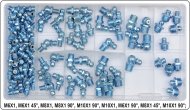 Sada obsahuje 110 kusů mazacích hlavic s metrickým závitem, nepostradatelných v garáži, zemědělství nebo průmyslu. Vše je přehledně uspořádáno v plastovém kufříku. Obsah balení 60 x hlavice M6X1 5 x hlavice M6X1 45° 5 x hlavice M6X1 90° 10 x hlavice M8X1 5 x hlavice M8X1 45° 5 x hlavice M8X1 90° 10 x hlavice M10X1 5 x hlavice M10X1 45° 5 x hlavice M10X1 90° Celý popis