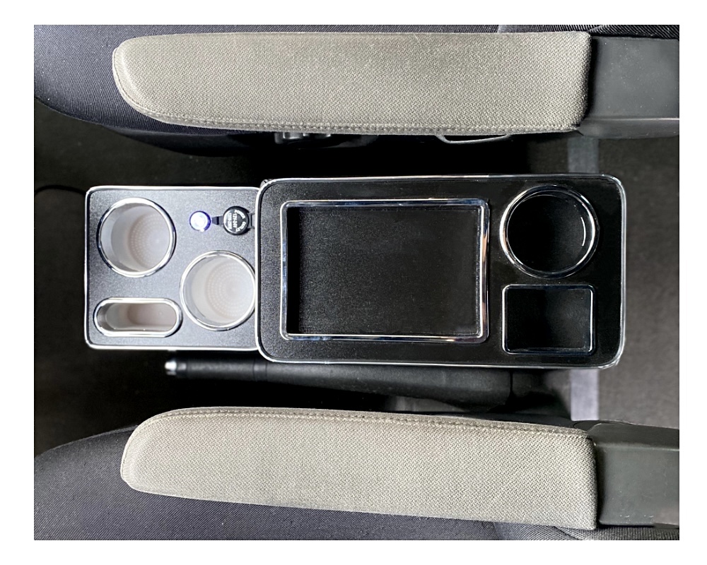 Exkluzivní odkládací přihrádka pro upevnění mezi předními sedadly.