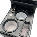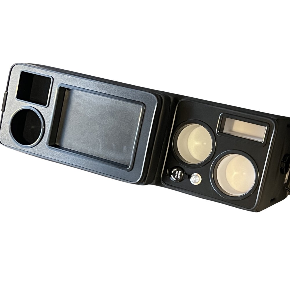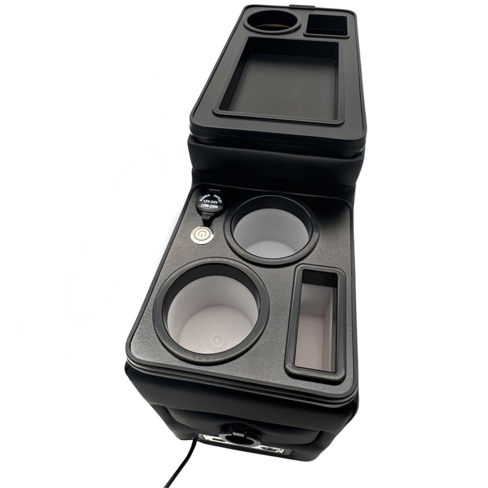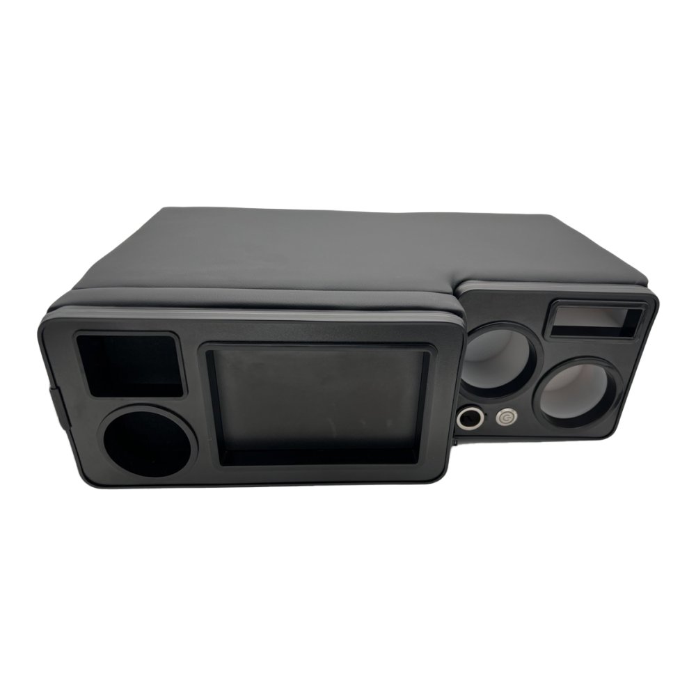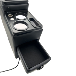Multifunkční středová konzole pro VW T5 a T6 a T6.1 s úložným prostorem v černém provedení.