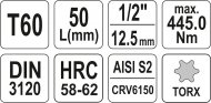 »  Nářadí  »  Ruční nářadí  »  Klíče a násadky  »  Imbusy a Torx klíče  »  Nástavec 1/2" bit Torx T60