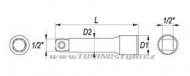 Kvalitní prodlužovací nástavec 1/2" délky 76 mm umožňující mírný výkyv ořechu (náklon). Zhotovení z CrV oceli 50BV30. D1 průměr (mm) 24 D2 průměr (mm) 14,5 délka (mm) 76 velikost zakočení 1/2" Celý popis