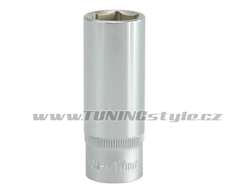 Nástavec huboký šestihranný 3/8"(10mm) vyroben z kvalitní chromvanadiové slitiny oceli CrV 50BV30 a splňující normu DIN 3121 s celkovou délkou 63mm. Funkce AS-DRIVE umožňuje vyvinout větší kontaktní sílu, neboť ke kontaktu se šroubem nedochází na hranách šestihranu, nýbrž v první třetině styčných ploch. Tím nedochází k poničení hlavice šroubu a ořech mnohdy povolí i matice a šrouby již pon... Celý popis