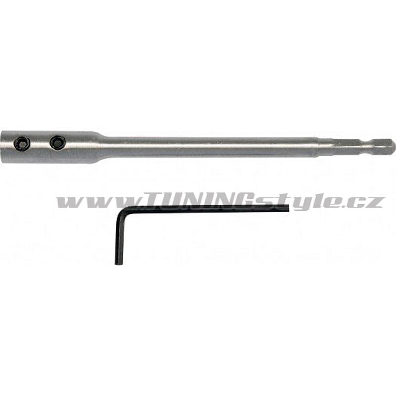 Prodlužovací nástavec 150 mm pro ploché vrtáky do dřeva. Nástavec je zhotoven z kvalitní vysoce uhlíkaté oceli HCS, délky 150 mm. Upínací otvor má průměr 7 mm, plochý vrták se zajišťuje pomocí 2 x imbus šroubků. délka (mm) 150 celková délka (mm) 150 materiál kalená ocel úchyt 1/4" Celý popis