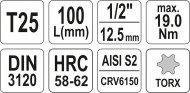 »  Nářadí  »  Ruční nářadí  »  Klíče a násadky  »  Imbusy a Torx klíče  »  Nástavec prodloužený 1/2" bit Torx T25