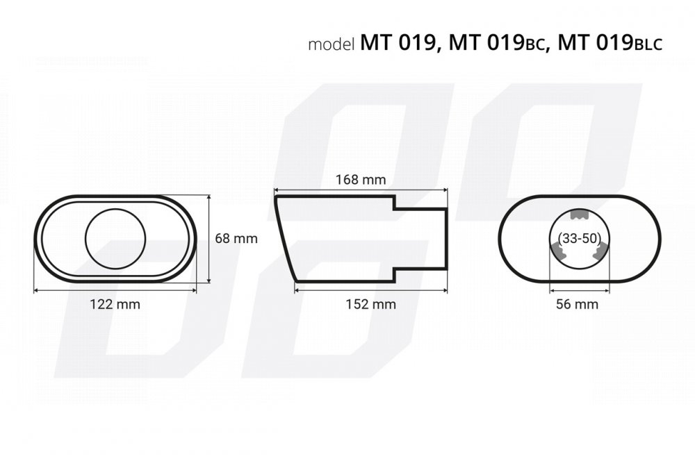 Koncovka výfuku, chromová z nerezavějící oceli. Svorka umožňuje snadnou instalaci bez vrtání nebo svařování. Snadné instalace a nastavení polohy Cena za 1ks Rozměry: Rozměry koncovky - 68x122 mm montážní rozměr - 33-50 mm Upozornění: doporučujeme kontrolovat a dotáhnout šrouby každých 500-1000km Celý popis