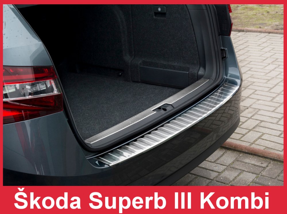 » Exteriér » Nášlapy kufru » Nerezová ochranná lišta zadního nárazníku Škoda Superb III kombi 15- chromová