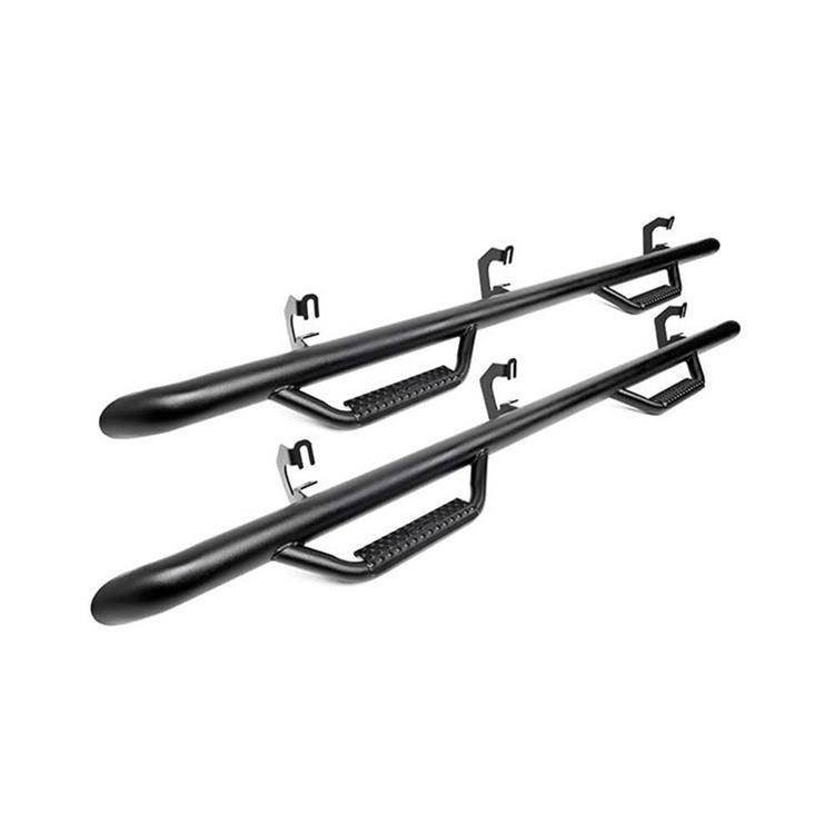 Color: textured black Length: 199,58 cm Weight rating: 210,9 kg Drop step design Compatible with all bed sizes Bar is positioned high and tight for better fit and cleaner look Added protection from road debris Built from 2,134 mm wall corrosion resistant tubing Solid one-piece construction Helps hide exposed frame under vehicle Fits with or without a body lift Celý popis