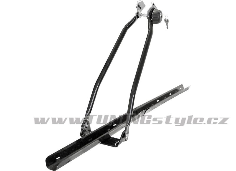 Střešní nosič jízdního kola, určeno pro automobily s namontovaným střešním nosičem.Klasická konstrukce, snadná montáž na střechu bez použití nářadí. Jednoduché upnutí kola do nosiče, upevňovací pásky na přední i zadní kolo. Pro kola s rámem kruhového (max. 60 mm) nebo s oválného průřezu (max. 60 mm).Technická datakapacita1x jízdní kolouzamykatelnýano, 2 klíčepro střesní nosičeprofil max. 48 x 3... Celý popis