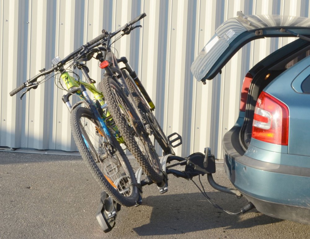 Univerzální nosič jízdních kol s jednoduchým systémem upevnění, sklápěním pro přístup do kufru, s kompletně osvětleným panelem a místem pro SPZ.