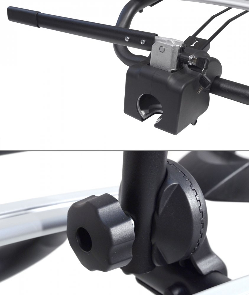 Upevnění kola do nosiče se obejde bez nářadí, provádí se uchycením držáku na rám a dotažením spon na kola, umístěných na základně. Mechanismus je uzamykací a nehrozí tak odcizení kola. Růžici pro upevnění jízdního kola je nutné důkladně dotáhnout, aby se překonal odpor prokluzu v zamčené poloze.