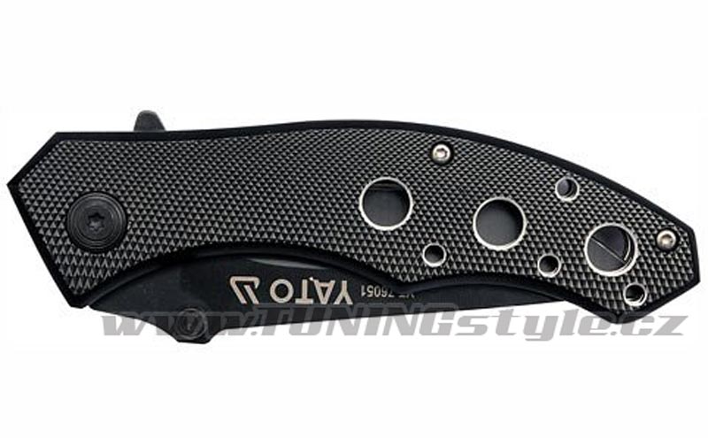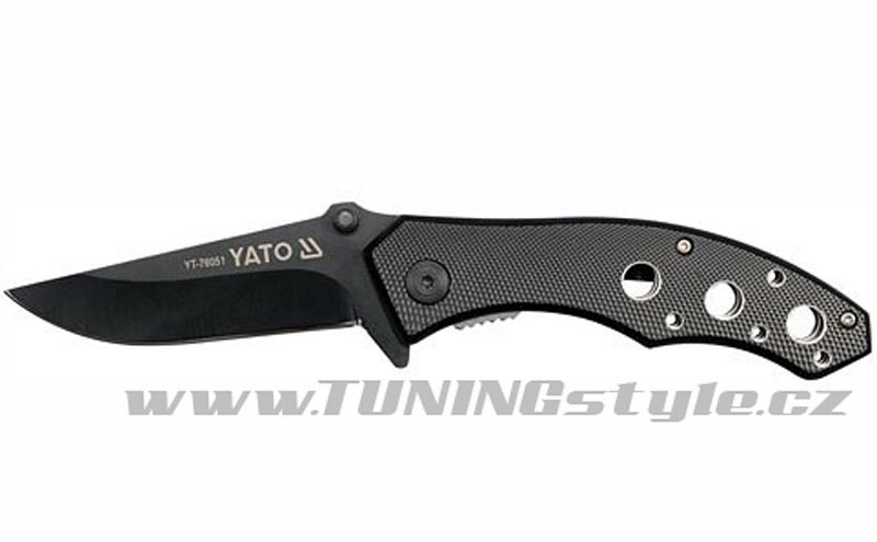 Nůž je určen především pro milovníky nožů a fandy značky Yato. Čepel je zhotovena z kvalitní nerezové oceli, lakované do matné, černé barvy a je vybavena výstupky z vrchní i spodní strany, zamezující sklouznutí ruky a možného poranění při používaní.
