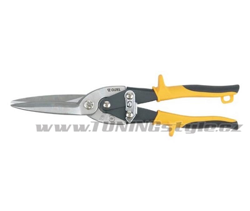 Převodové nůžky délky 290 mm na stříhání plechu. Čelisti s mikroozubením, zhotoveny z tvrzené CrMo oceli s tvrdostí 60-62 HRC a mají délku střihu 75 mm. Mikroozubení zamezuje vysmeknutí plechu mimo osu při střihu. Rukojeti jsou ergonomicky oplastované. Vhodné pro plechy měď a měkké kovy max. 1,1 mm ocel válcovaná za studena max. 0,94 mm ocel do tvrdosti HRC 35 max. 0,7 mm nerezová ocel max. 0,... Celý popis
