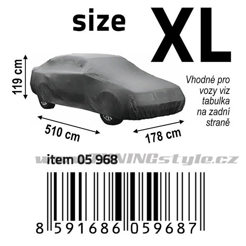 Prodyšná plachta na celý vůz. Zabraňuje mírné vlhkosti a námraze, vhodná proti znečištění vozu. Chrání karoserii vozidla proti povětrnostním vlivům a před UV zářením.Jednoduché univerzální upevnění pomocí všité gumy ve spodní části. Baleno v praktickém, na zip uzavíratelném balení, do kterého lze plachu po použití snadno složit a uskladnit.technická data: velikostXLrozměry510 x 178 x 119 cmmate... Celý popis