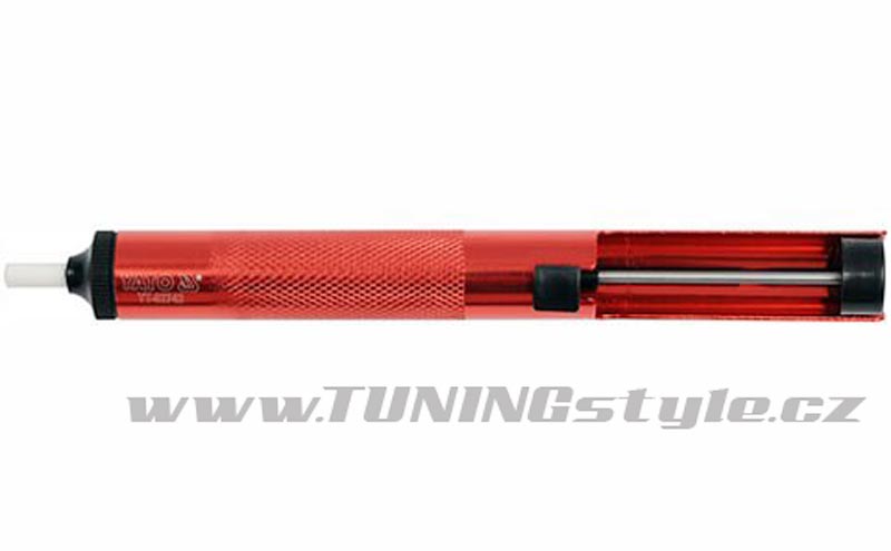 Odsávačka cínu Yato délky 190 mm.• Odsávačka cínu 19,5 x 190 mm Yato• Délka těla odsávačky 190 mm• Průměr těla odsávačky 19,5 mm• Teflonový hrotmateriáltělo z hliníku, koncovka odolný platrozměry (mm)19.5X190 Celý popis