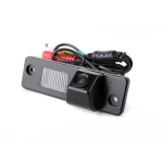 OEM barevná parkovací kamera pro instalaci na místo osvětlení zadní registrační značky. Součástí kamery je místo pro umístění patice se žárovkou z původního světla pro registrační značku.