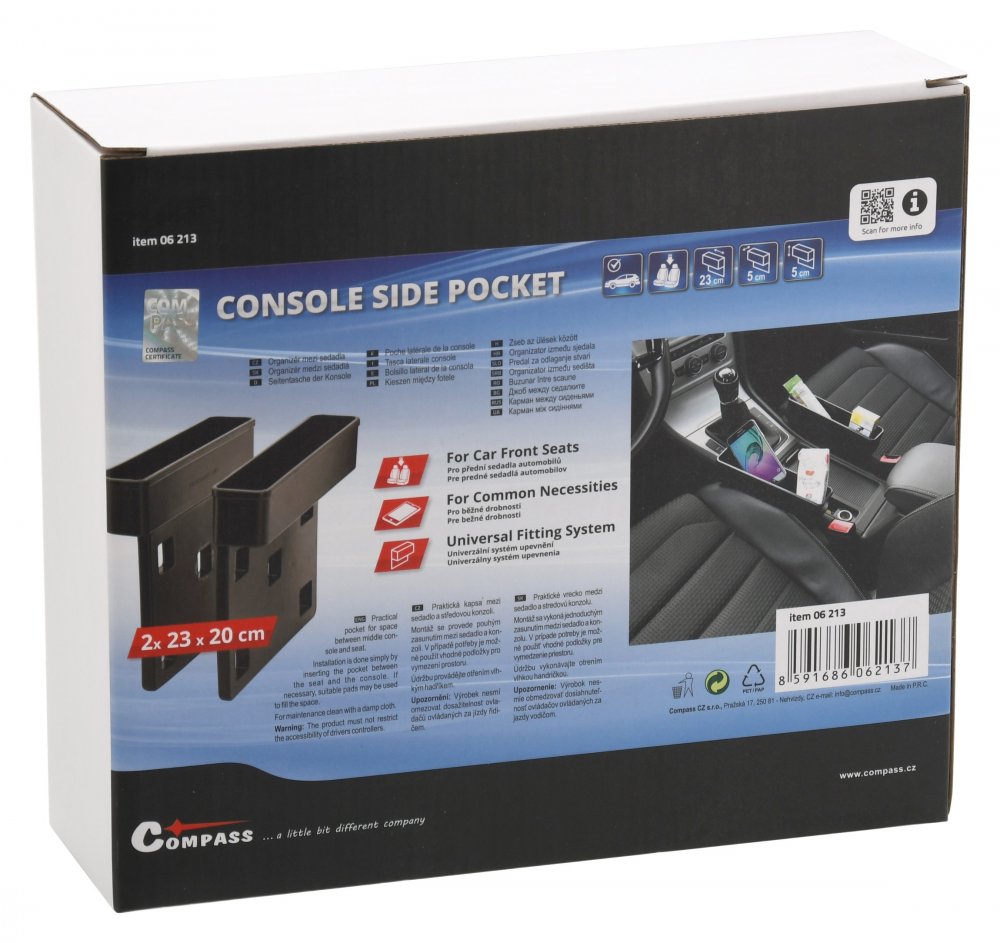 Sada praktických kapes mezi přední sedadla a středovou konzoli, vhodné pro běžné drobnosti. Montáž se provede pouhým zasunutím mezi přední sedadlo a konzoli. V případě potřeby je možné použít nalepovací podložky pro vymezení prostoru a zamezení svévolnému pohybu organizérů. Údržba je možná otřením vlhkým hadrem. Technická data sada 2 ks rozměry přihrádky 23 x 5 x 5 cm celkové rozměry 23 ... Celý popis