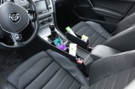 Montáž se provede pouhým zasunutím mezi přední sedadlo a konzoli. V případě potřeby je možné použít nalepovací podložky pro vymezení prostoru a zamezení svévolnému pohybu organizérů.