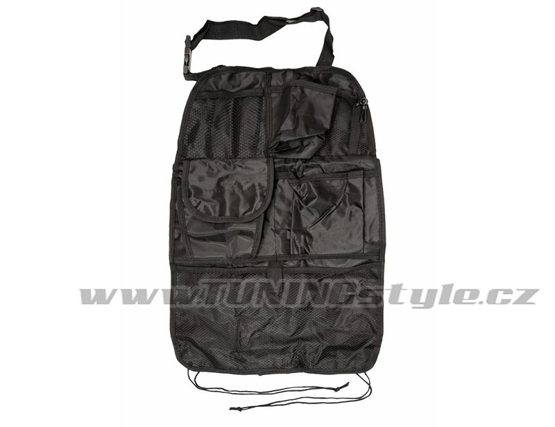 Organizér určený k připevnění na zadní stranu předního sedadla. Upevnění horní části pomocí popruhů za opěrku hlavy, spodní části popruhy za sedadlo. Jedinečné uspořádání - několik různých kapes vhodných pro mapy, nápoje a různé drobnosti.