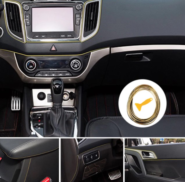 • Ozdobná štěrbinová lišta do interiéru auta - zlatá, 5m