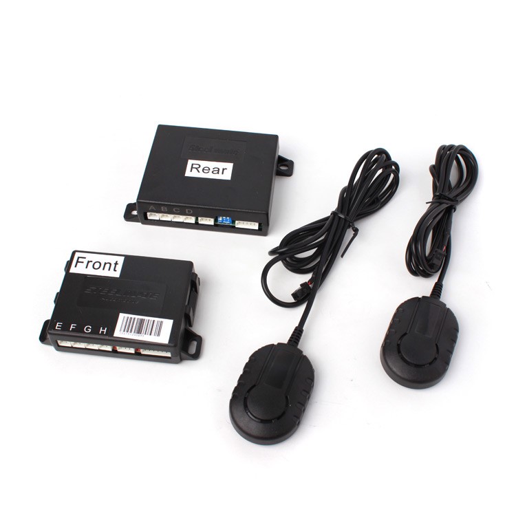 Osm-snímačové parkovací asistent STEELMATE se zápustními snímači 16mm bílé bravy, dvěma bzučáky s přepínači nastavení hlasitosti a výšky tónu. Systém je určen pro instalaci do předního a zadního nárazníku vozidla. Nové řídící jednotky umožňují nastavení citlivosti snímačů a také nastavení zpoždění vypnutí předních snímačů ve dvou úrovních. Popis systému: