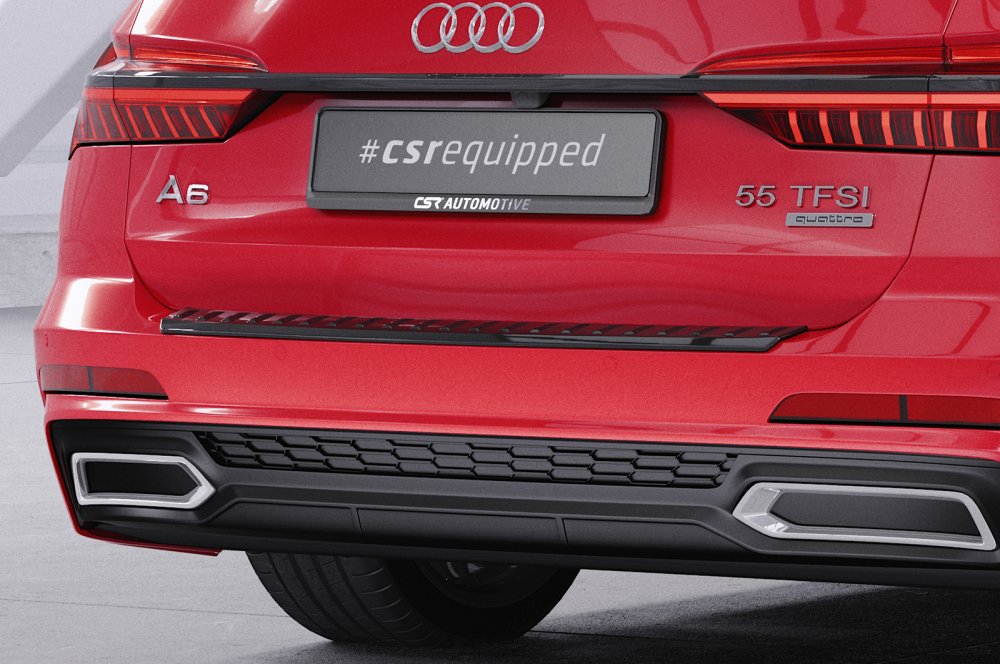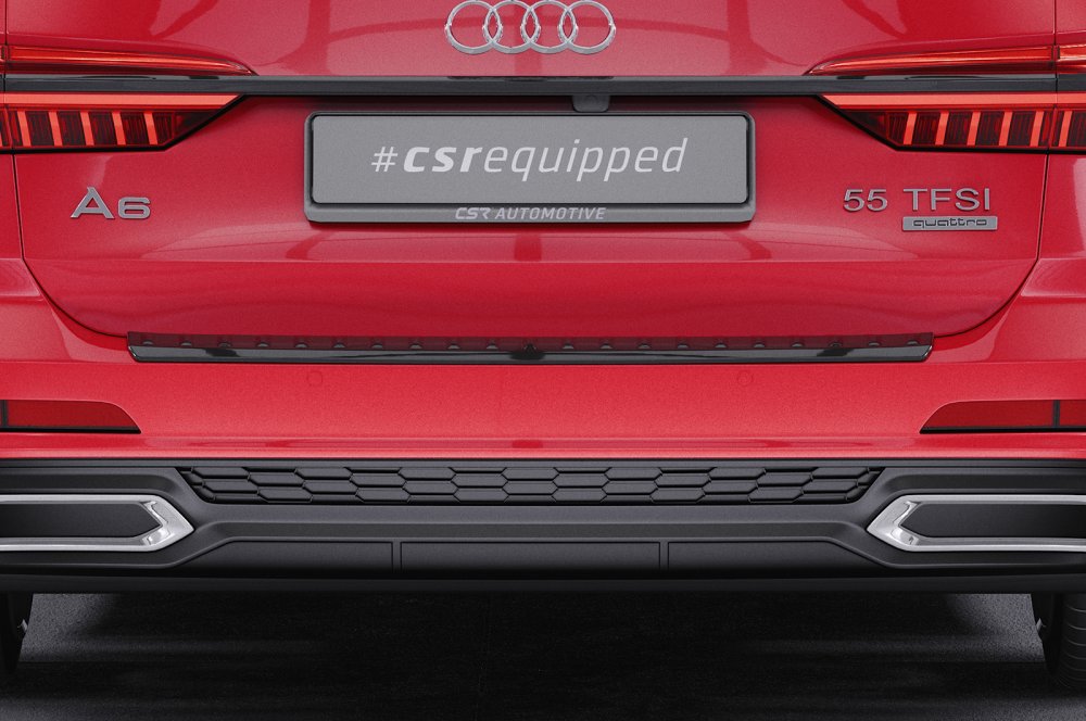 »  Exteriér  »  Nášlapy kufru  »  Plastová ochranná lišta zadního nárazníku CSR pro Audi A6 C8 (Typ 4K/F2) Avant - černá lesklá