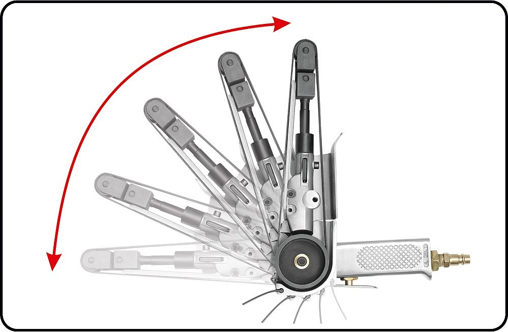 Profesionální pásová pneumatická bruska pro pásy rozměrů 20 x 520 mm Pracovní rychlost brusky je 20 000 ot./minutu, hlava brusky je nastavitelná. Bruska je opatřena spojkou 1/4" pro připojení k pneumatickému systému. Technická data max. otáčky 20000 ot/min max. pracovní tlak vzduchu 0,63 Mpa přívod vzduchu rychlospojka 1/4" rozměr brusného pásu 20 x 520 mm Celý popis