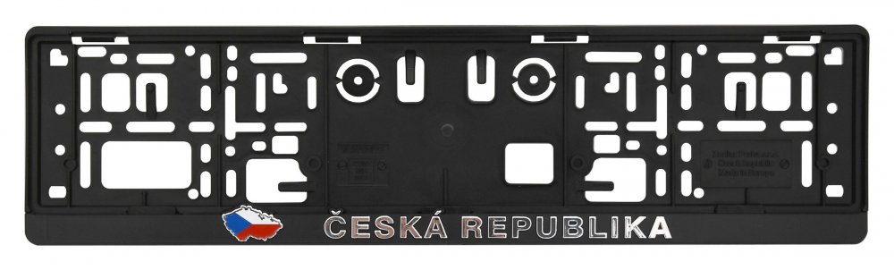 Plastová podložka pod tabulku registrační značky (RZ) nebo státní poznávací značky (SPZ) běžných rozměrů. Podložka je opatřena plastickou 3D mapou ve státních barvách a nápisem Česká republika s chromovaným povrchem. Podložka je vybavena spodní lištou se zajišťovacími zámečky a celou řadou montážních otvorů, díky kterým je její upevnění opravdu univerzální. Návod na montáž: Oddělte spodní lištu... Celý popis