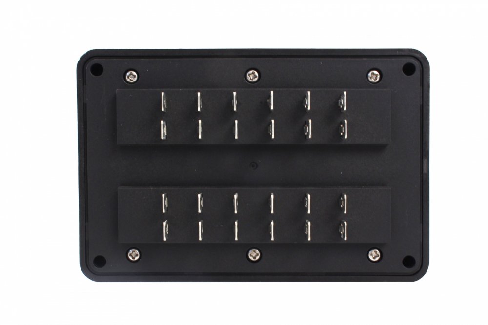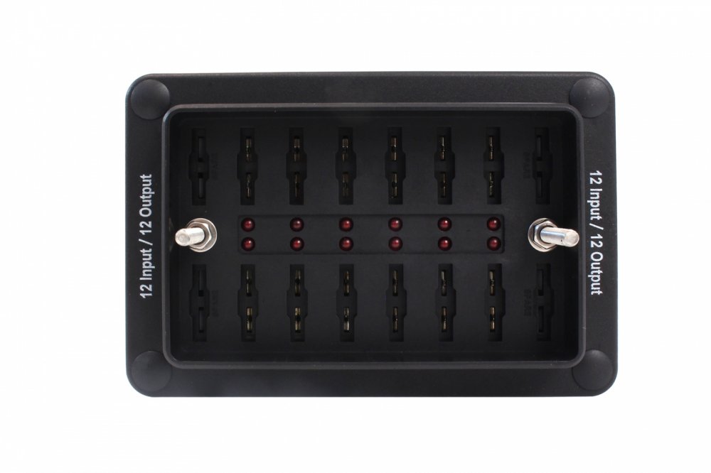 Počet pojistek typu unival 19mm: 12 ks. Průhledné víko se zámky drží velmi pevně Kvalitně vyrobená Max. pracovní napětí 32V Max. zatížení na jeden obvod 30A max zatížení 100A Celý popis