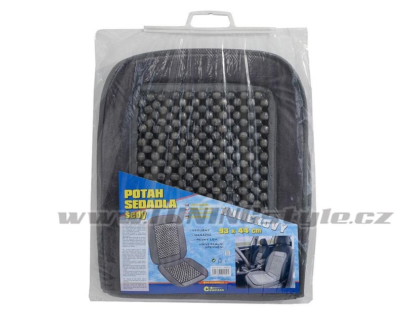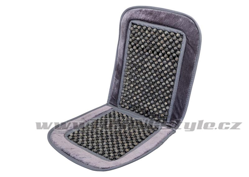 Potah s pevným lemem, výplň z dřevěných kuliček, které příjemně masírují tělo, podporují krevní oběh, pomáhají snižovat únavu i bolestivost zad a umožňují proudění vzduchu mezi sedadlem a zády řidiče.