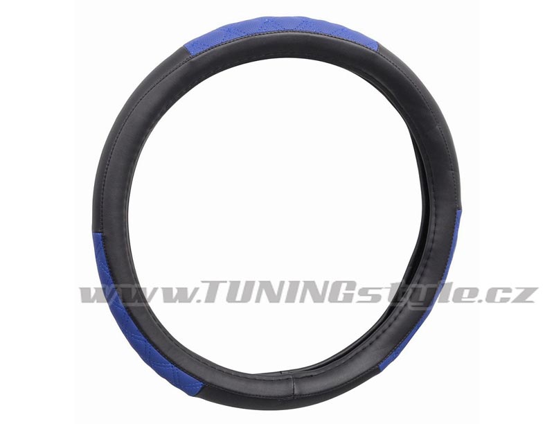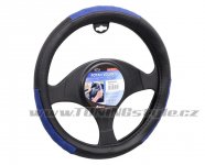 Potah určený k nasazení na volant o průměru 37-39cm.Černé provedení s modrými doplňky a s elegantním vším modrých nití. Celý popis