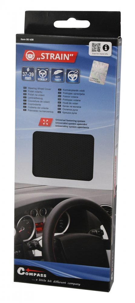 Potah určený pro volanty osobních vozidel s obvyklým průměrem 37-39 cm. Potah se připevní na volant pouhým nasazením po obvodu volantu. Materiál potahu je příjemný na dotek a zlepšuje vzhled volantu. Spodní strana je opatřena neklouzavým povrchem pro zvýšení bezpečnosti. Celý popis
