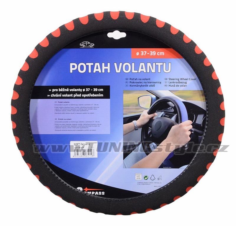 Pěnový potah určený k nasazení na volant o průměru 37-39cm. Příjemný do ruky. Barva černá s červenými prolisy. Celý popis