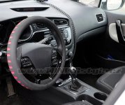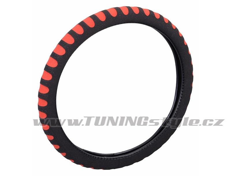 Pěnový potah určený k nasazení na volant o průměru 37-39cm. Příjemný do ruky. Barva černá s červenými prolisy.