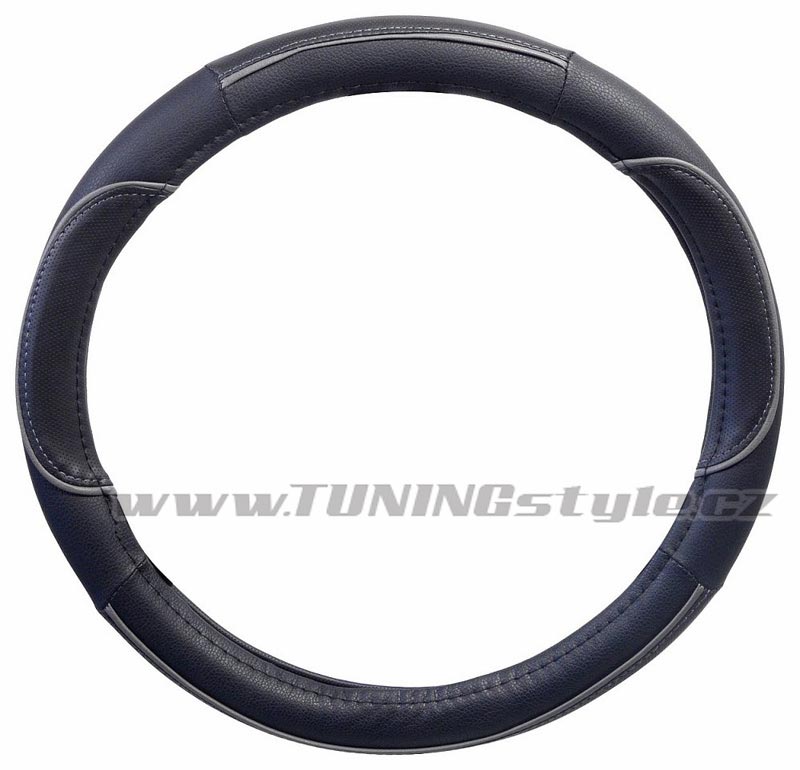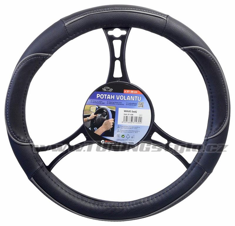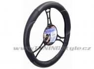 Potah určený k nasazení na volant o průměru 37-39cm.Černé provedení s šedými doplňky po obvodu potahu. Celý popis