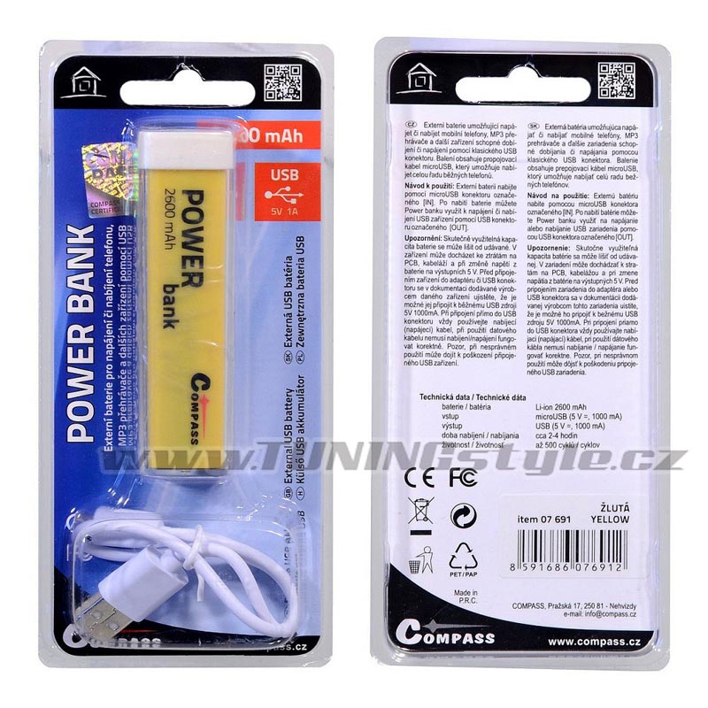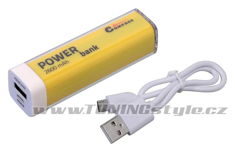 Powerbanka - externí baterie umožňující napájet či nabíjet mobilní telefony, MP3 přehrávače a další zařízení schopné dobíjení či napájení pomocí klasického USB konektoru. Balení obsahuje propojovací kabel microUSB, který umožňuje nabíjet celou řadu běžných telefonů.