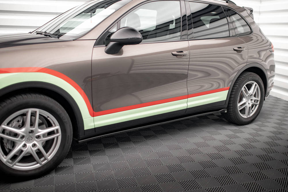 Lišty na prahy Porsche Cayenne Mk2 Určeno pro : Porsche Cayenne Mk2 2010-2014 Navíc si můžete vybrat červený nebo bílý pruh pro vlastní montáž. (Standardně expedujeme výrobek bez pruhů.) Kompletní sada obsahuje : Prahové lišty (levá+pravá) Montážní sada Vyrobeno z ABS plastu ABS plast byl vyvinut speciálně pro použití v automobilovém průmyslu Využívá se pro výrobu nárazníků a dalších plastových... Celý popis