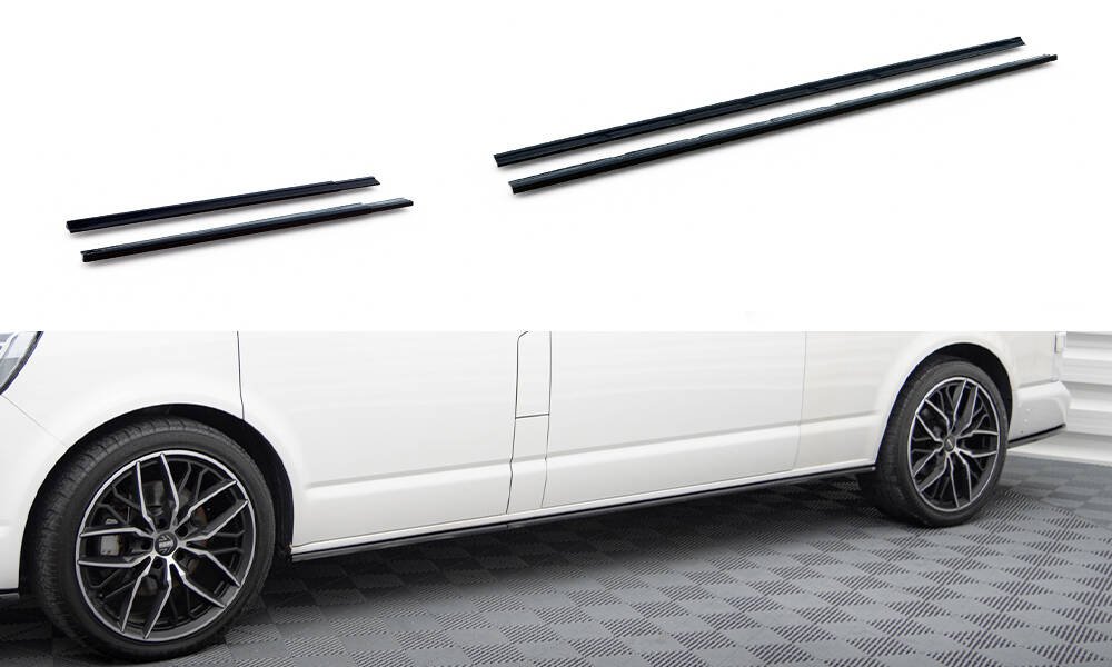 Prahové lišty Volkswagen T6 Long Facelift černý lesklý plast