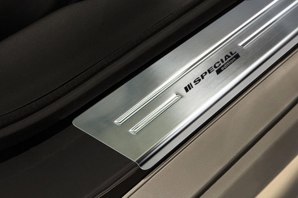 Vyznačuje se odolností vůči atmosférickým podmínkám (teplota -40°C/+50°C), návštěvy myčky (vlhkost) a ,nejedná se o typické prahové lišty protože nerezová ocel ze které jsou vyrobené je navíc saténová.Kartáčování zaručí, že její povrch je dokonale upraven mezi leskem a hlubokým matem.Standartem je také ochrana při překrytí okraje prahu, přes speciálně profilovaný záhyb.Montuje se za použití oboustranné pásky ,která je umístěná na všech okrajích lišty. Stačí lištu přiměřit, následně odmastit práh za pomocí hadříku a odstranit ochranný film z pásky, přilepit a hotovo! (Viz video pod popisem)