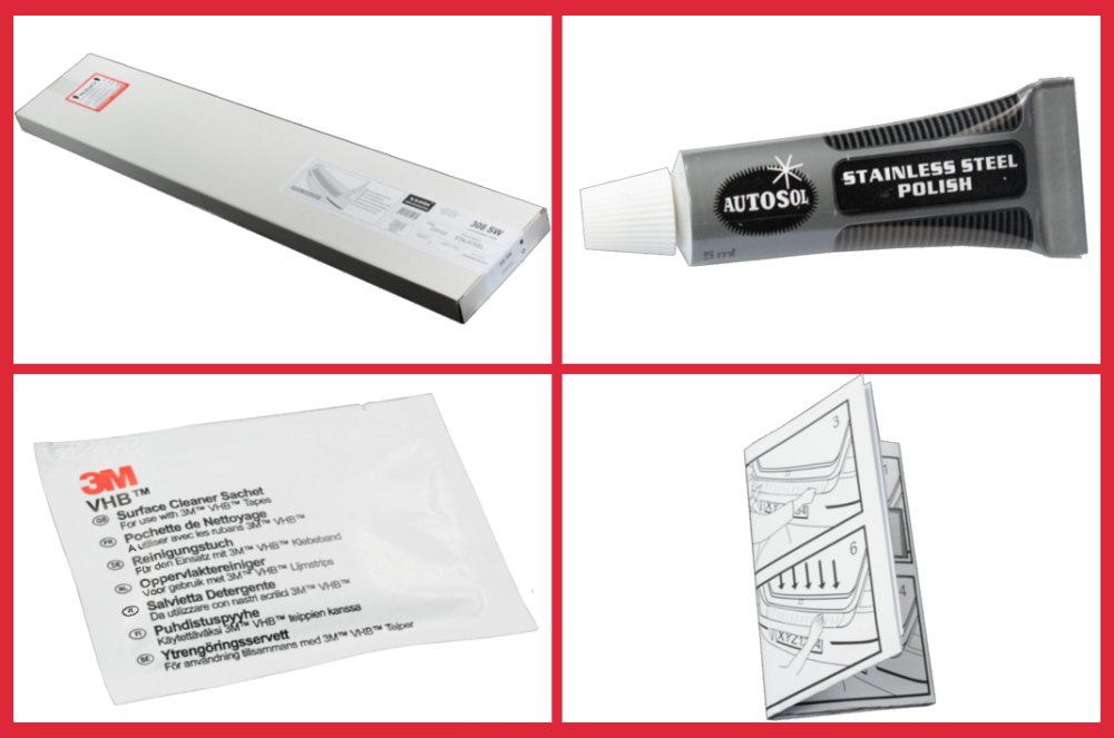 Pozor! Opatrně lepte, protože po jednorázové montáži je demontáž možná pouze za účasti specialisty (karosář, lakýrník).