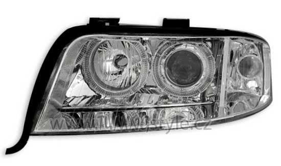 Přední světla angel eyes AUDI A6 01-04 D2S xenon chrom