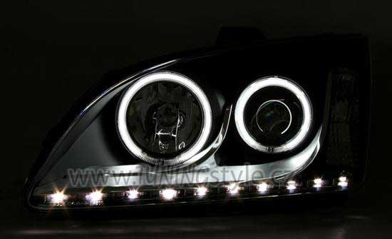 »  Osvětlení vozu  »  Světla a čirá optika  »  Přední světla  »  Přední světla angel eyes CCFL Ford Focus 04-08 černá