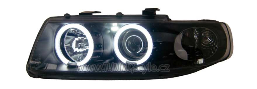 »  Osvětlení vozu  »  Světla a čirá optika  »  Přední světla  »  Přední světla angel eyes CCFL Seat Leon 99-05 černá
