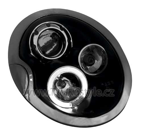 »  Osvětlení vozu  »  Světla a čirá optika  »  Přední světla  »  Přední světla angel eyes Mini Cooper černé
