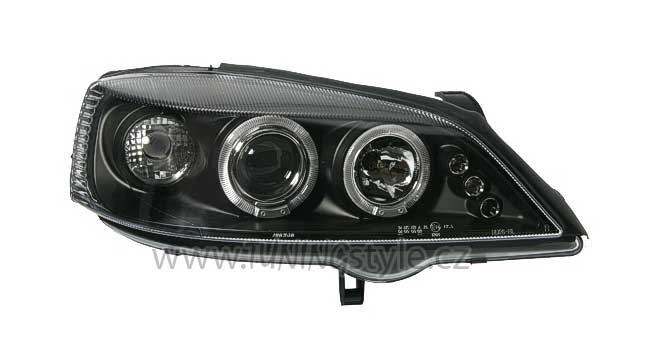 »  Osvětlení vozu  »  Světla a čirá optika  »  Přední světla  »  Přední světla Angel Eyes Opel Astra G 98-04 černá