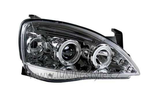 »  Osvětlení vozu  »  Světla a čirá optika  »  Přední světla  »  Přední světla angel eyes Opel Corsa C - chromové