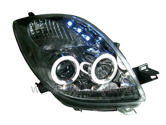 »  Osvětlení vozu  »  Světla a čirá optika  »  Přední světla  »  Přední světla angel eyes Toyota Yaris 06+ chromové