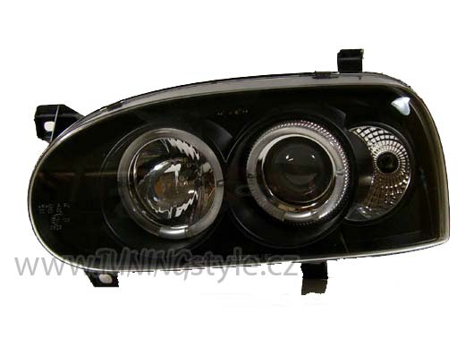 »  Osvětlení vozu  »  Světla a čirá optika  »  Přední světla  »  Přední světla angel eyes VW Golf 3 - černá