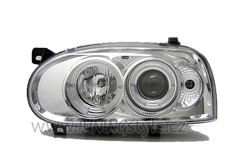 »  Osvětlení vozu  »  Světla a čirá optika  »  Přední světla  »  Přední světla angel eyes VW Golf 3 - chromová
